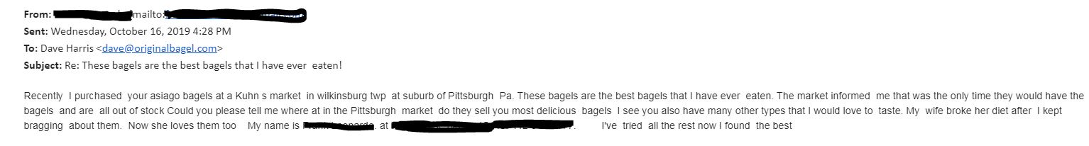 HELLO ORIGINAL BAGEL PEOPLE! Email" Letter